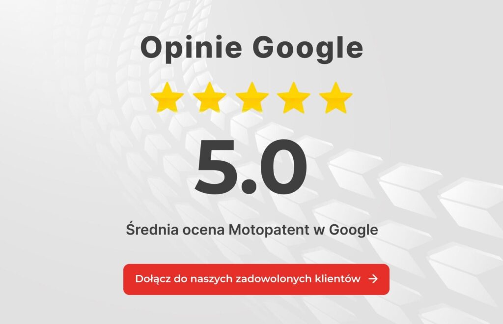 Średnia ocena Motopatent w Google z 100 opinii.